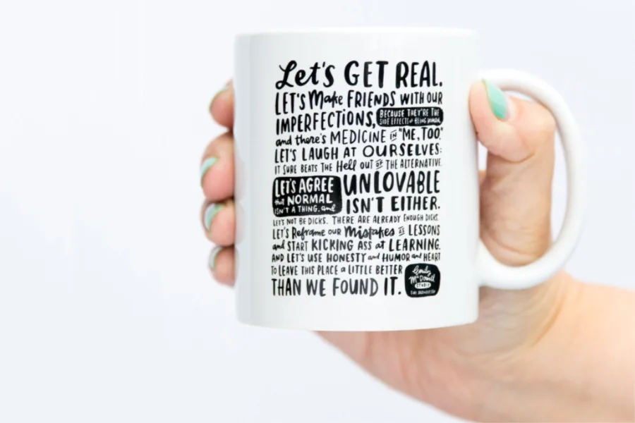 I love the idea of starting my day with inspirational quote mug — and yes, I admit I’ve become that person — but oy. Have you seen what qualifies for inspirational sayings these days? I can’t get into The only thing stopping you are your dreams, which might be totally cool if you don’t have, you know, responsibilities. Or like a budget, or a demanding job, or kids to feed and clothe and keep alive.