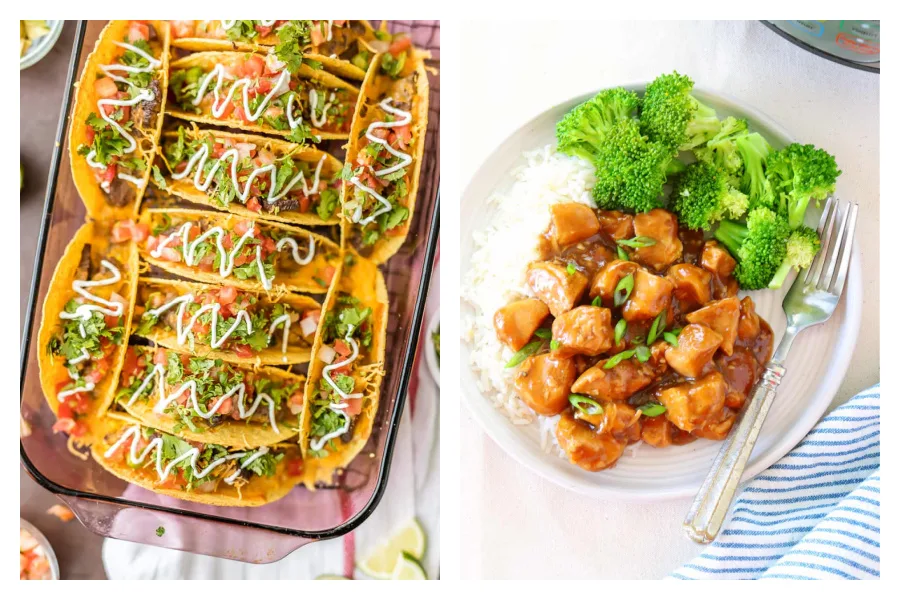 Top Image: Baked Steak and Egg Breakfast Tacos from The Cookie Rookie and Best Instant Pot Teriyaki Chicken from Crunchy Creamy Sweet
