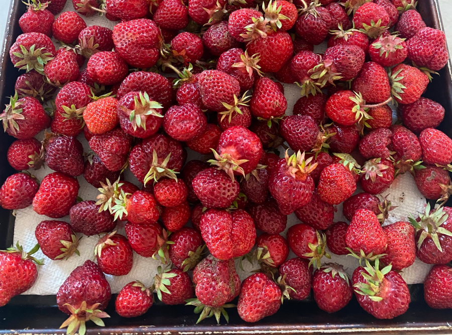 Around me, there are local berry stands on almost every corner, and because I know how short the season is — typically June 1-20 — I stop and buy a half flat of berries whenever I drive by. I end up with so many strawberries that I literally use them in almost every meal so we don’t waste even one berry.